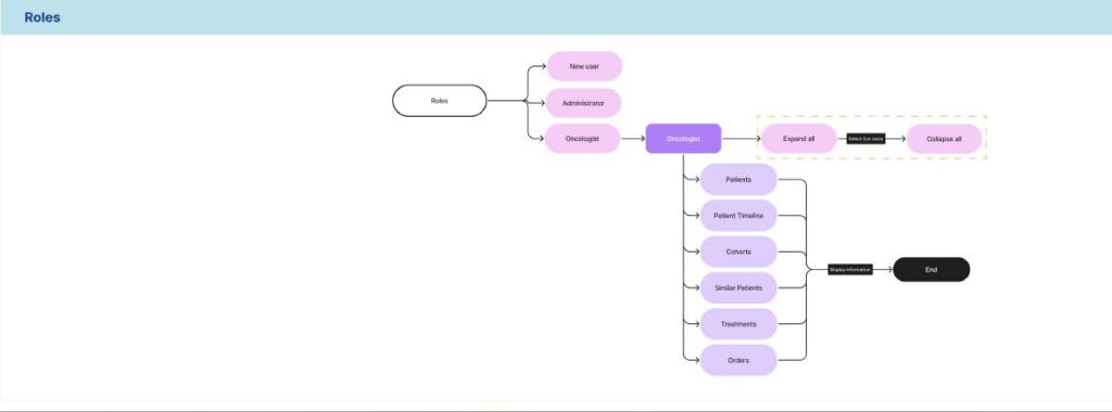 • Role-Specific Design: The research underscored the importance of creating a tailored experience for different user roles. Oncologists needed segmented interfaces, while hospital administrators required a consolidated view.