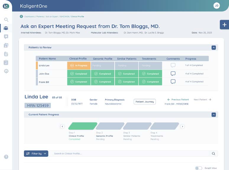 The company was tasked with introducing its first Precision Medicine Portal System designed for oncologists, aiming to streamline the way patient information is accessed and managed in oncology settings. The primary challenge was to create a system that was not only easy to use but also efficient, as oncologists typically have very limited time—usually no more than 20 minutes—to conduct routine check-ups. This meant the system needed to surface the most relevant patient data quickly, enabling healthcare providers to make critical decisions with ease and speed.